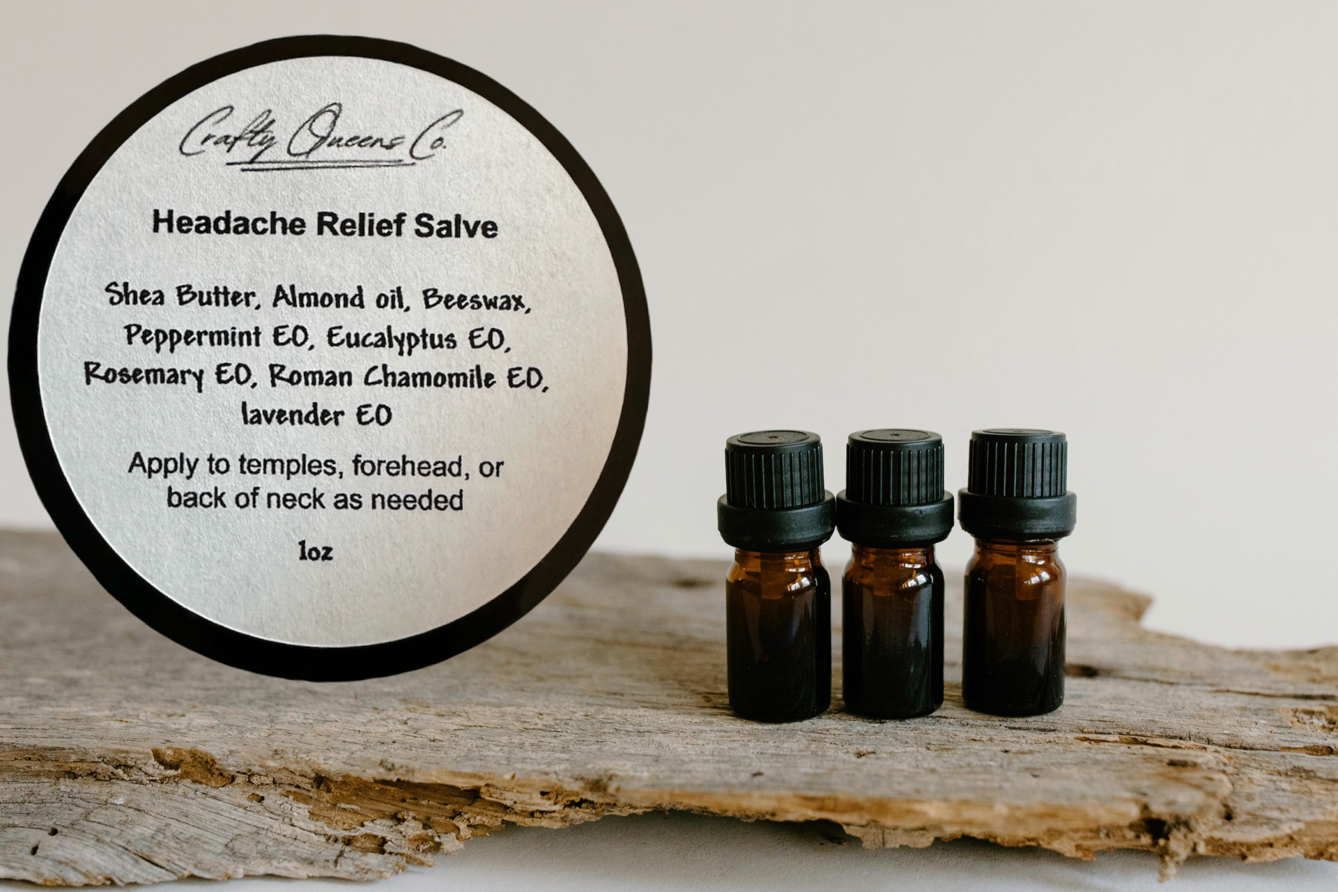 Experience quick and natural relief from tension, migraine, and sinus headaches with our 1oz Headache Salve. Infused with Peppermint, Eucalyptus, Lavender, and Roman Chamomile essential oils, this salve effectively reduces headache pain. Soothe headaches the natural way.